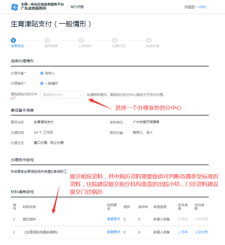 上传资料中,《生育保险待遇申请表》请按样表规范填写;病历资料住院业务,请选择盖有医疗机构业务章的出院小结上传;病历资料门诊业务,请选择可清晰表明参保人待遇的门诊病历上传(例:可以先上传手术当次门诊记录,如医保分中心不能核定参保人享受哪种待遇,医保分中心将通过电话或短信联系您告知下一步如何操作)。