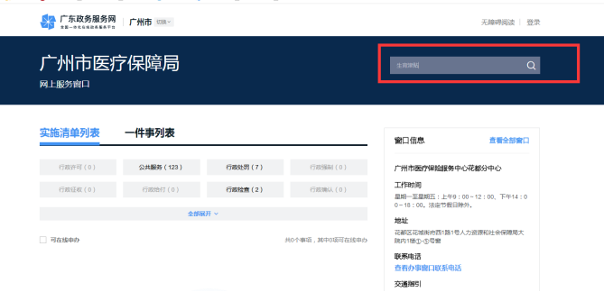 第二步:“切换区域与部门”选择“广州市-市医保局”。