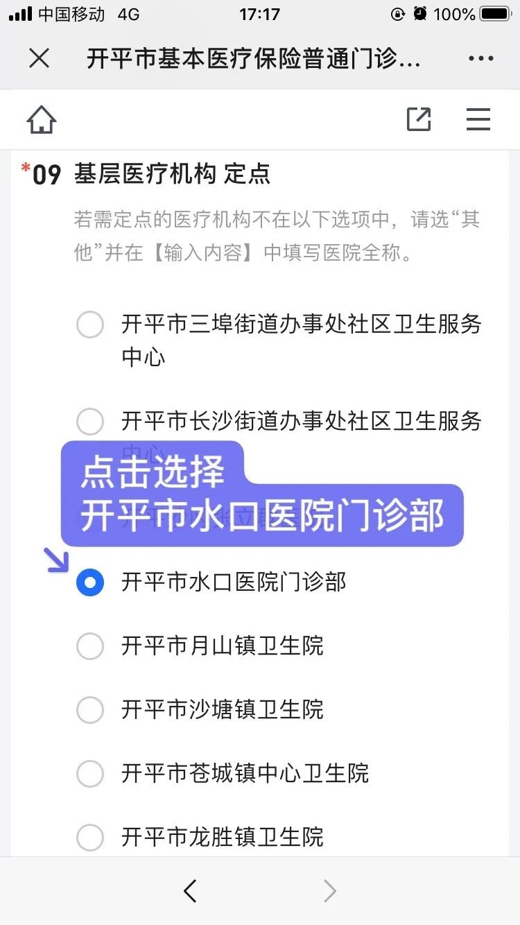 为方便老人家及其他无法线上办理变更的居民,开平市水口医院提供现场办理选点变更服务。居民可在服务时间内携带居民身份证或社保卡,到开平市水口医院住院部大楼一楼住院收费处或门诊部大楼一楼门诊收费处办理。