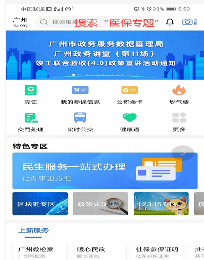 第一步:下载穗好办并实名认证,进去主界面后在搜索栏搜索“医保专题”。