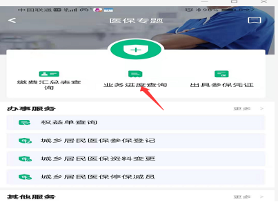 第二步:医保专题进入后,点击业务进度查询。