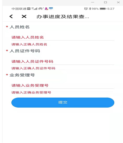 第三步:输入参保人姓名、身份证号码与受理号等信息后按提交。
