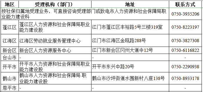 (四)补贴目录由各市(区)人力资源社会保障部门根据本地产业发展需求自行适时调整并向社会公布。补贴工种不少于5个,原则上每年12月调整一次,并报江门市人力资源和社会保障局备案。