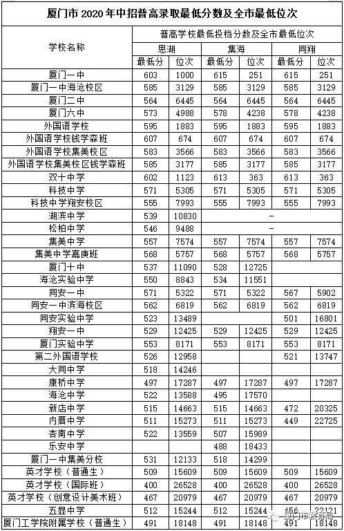 厦门中考录取分数线一览表(厦门中考录取分数线一览表2020)