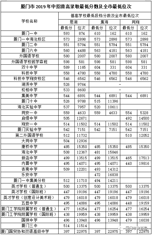 厦门各高中录取分数线(厦门各高中录取分数线是多少)