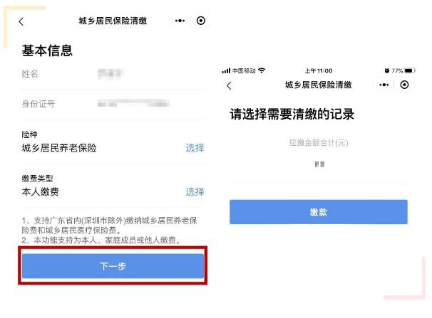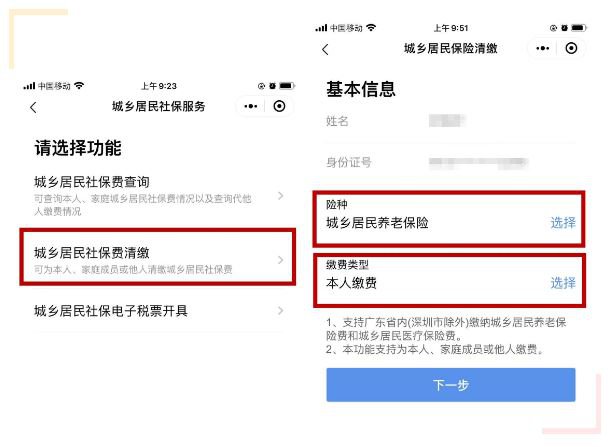 3.点击城乡居民社保费清缴,进入缴费界面,选择险种及缴费类型