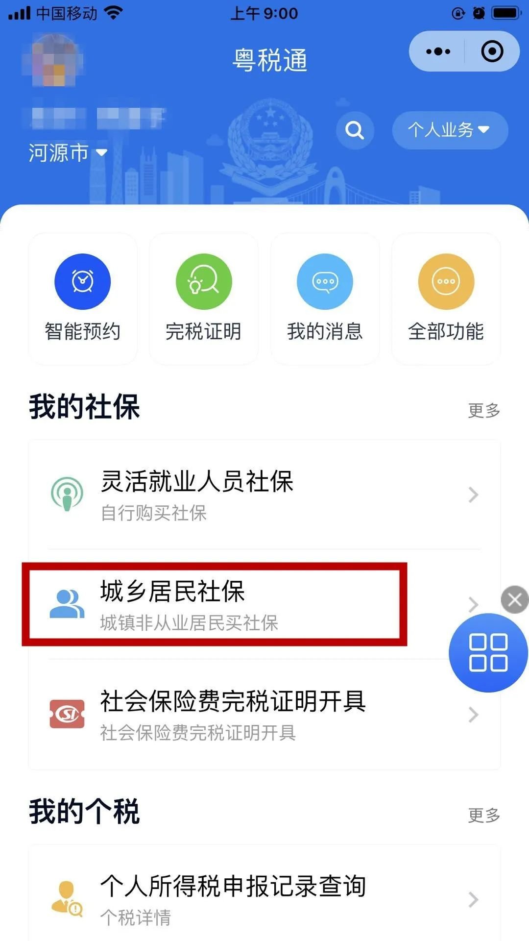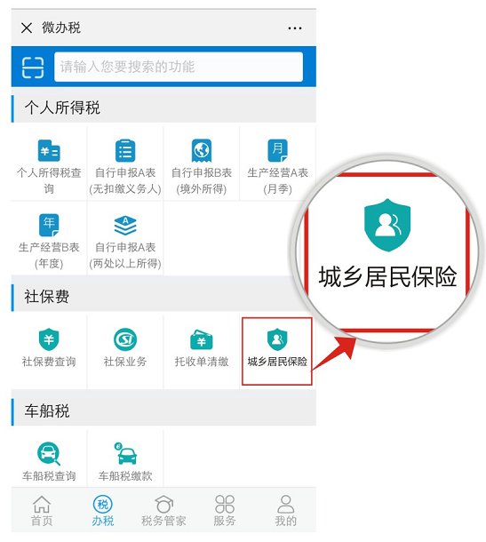 2.然后选择【微办税】--【个人业务】--【城乡居民保险】--【城乡居民保险清缴】