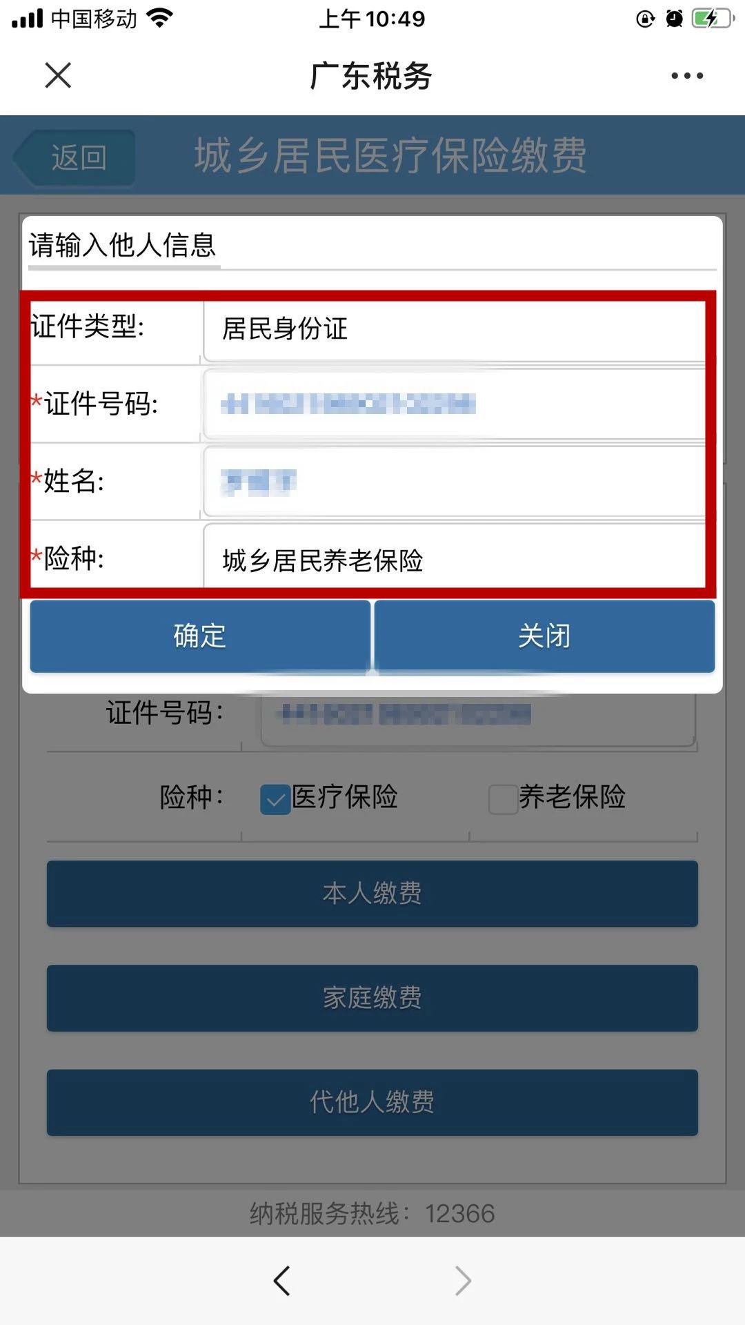 3.选择“本人缴费”“家庭缴费”“代他人缴费”