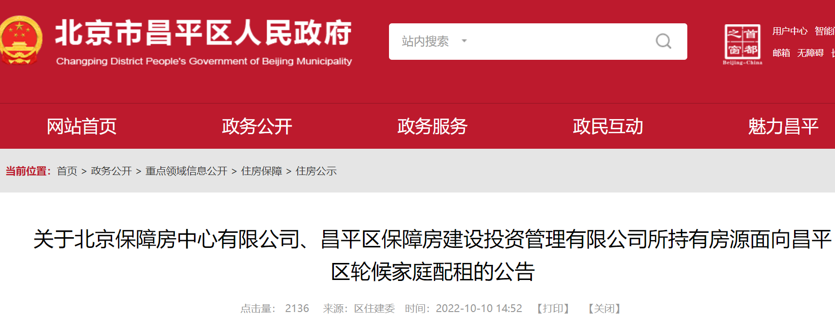 2022年10月北京昌平公租房快速配租公告(房源+申请)