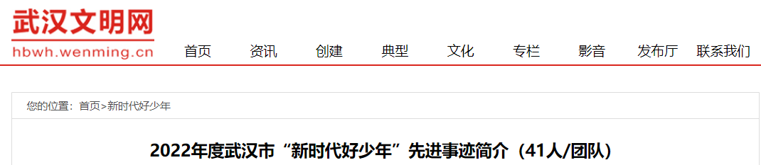 >>>2022年“武汉市新时代好少年”41名(组)同学名单及详细事迹查询入口:武汉文明网