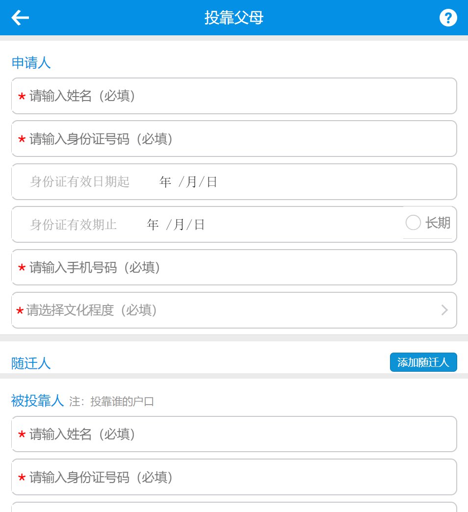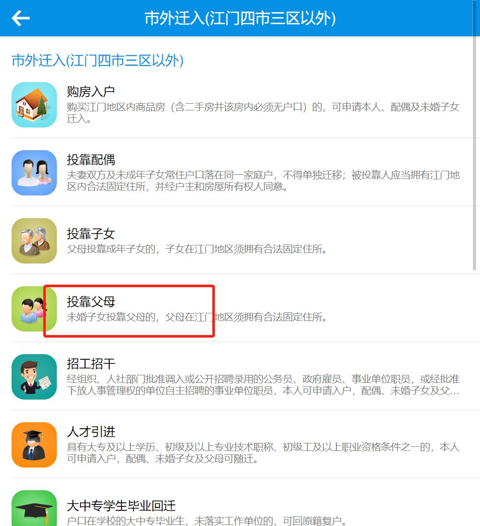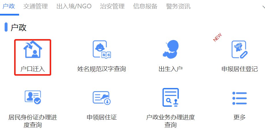 第二步:点选“户政”栏目下的“户口迁入”菜单,选择子女投靠父母,再按提示录入信息。