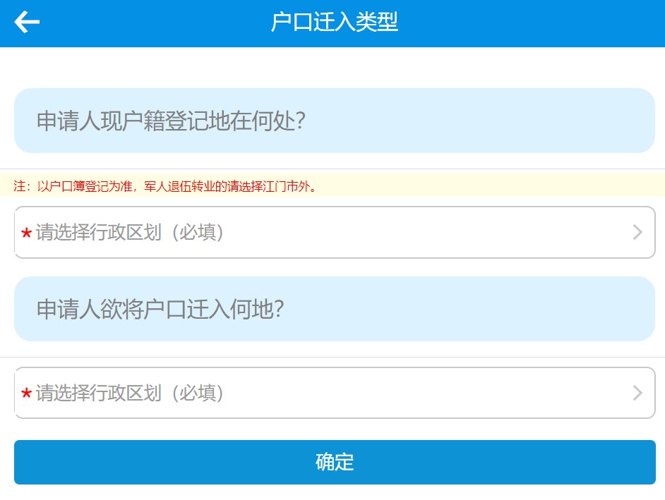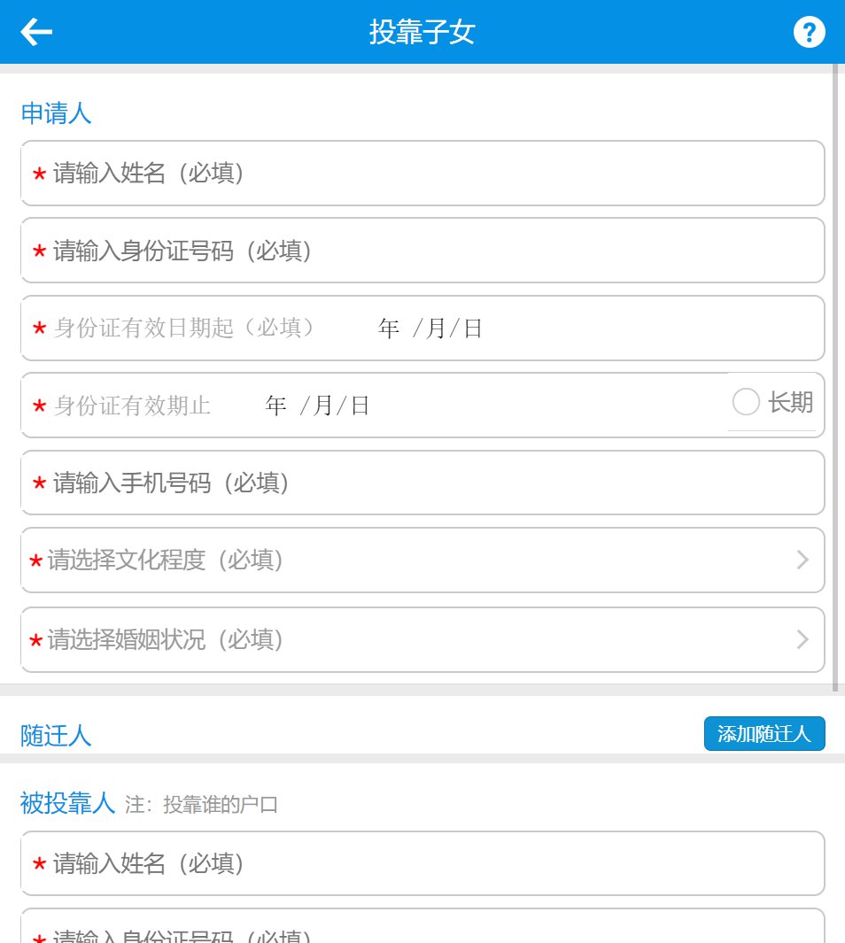 第三步:按实际情况点击户口迁入类型,选择父母投靠子女。