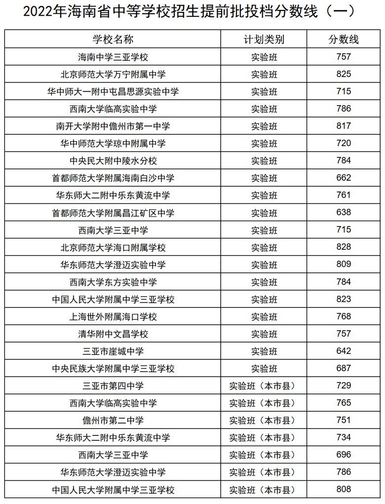 2022海南省各高中录取分数线汇总 海南重点高中录取分数线2021