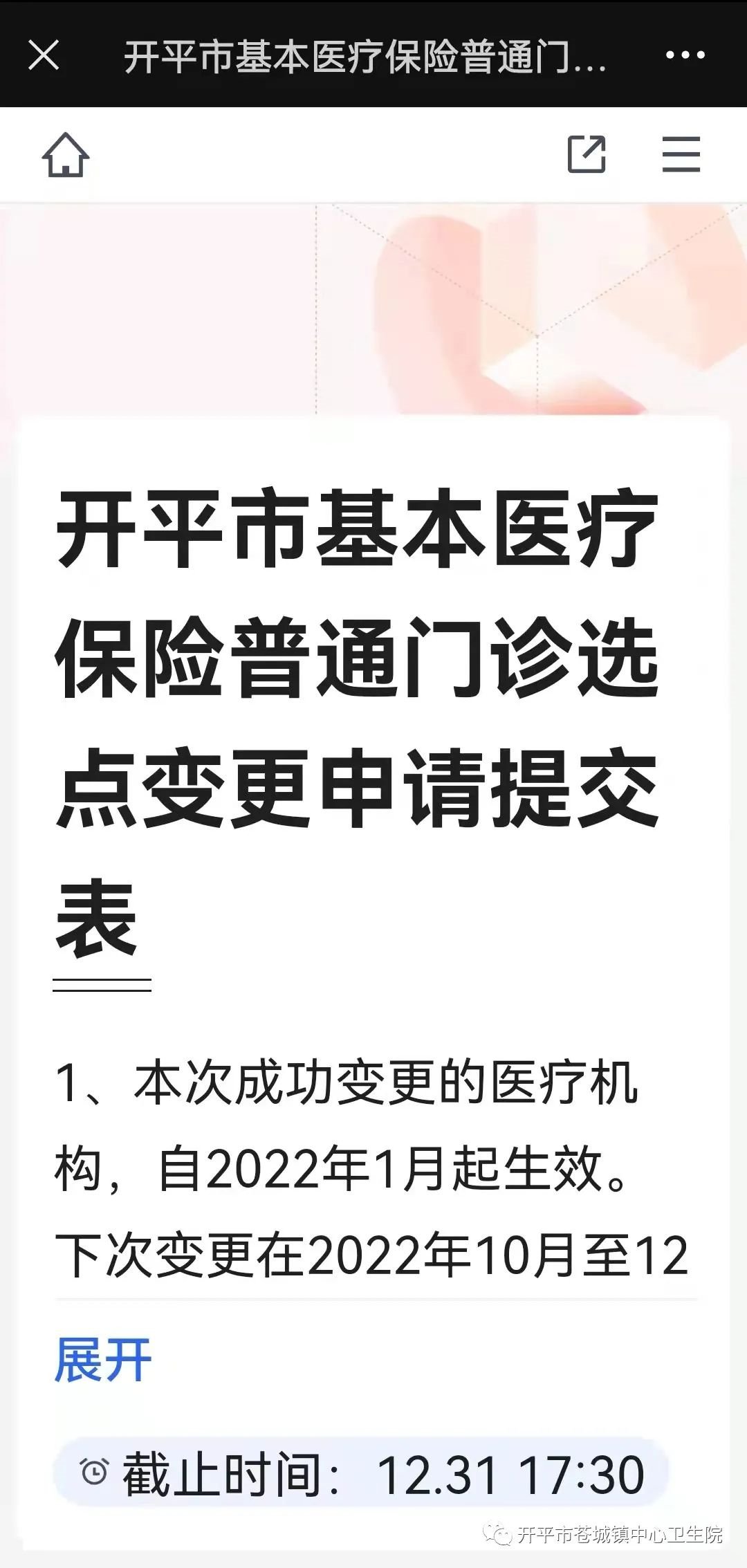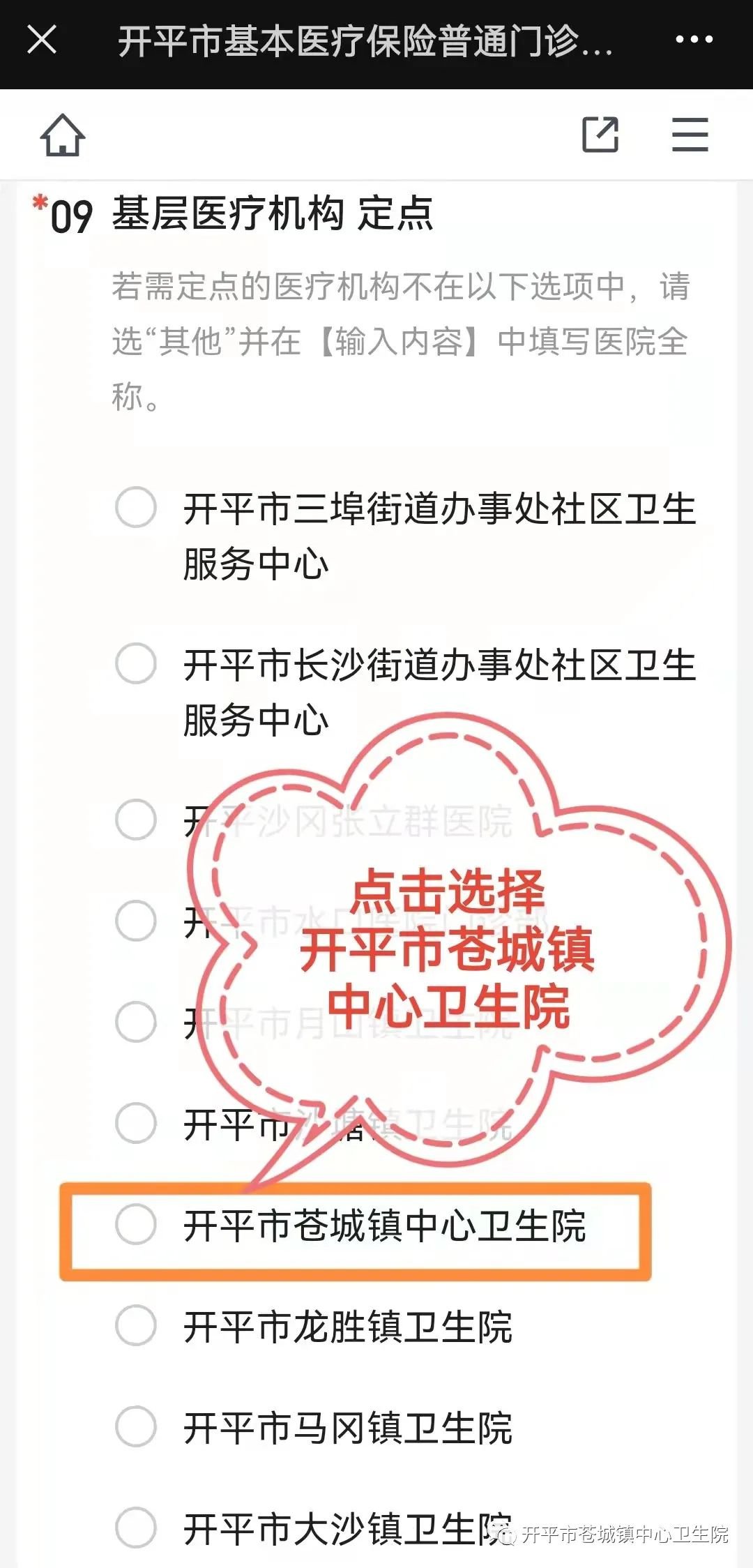 开平苍城卫生院医保普通门诊选点变更微信办理