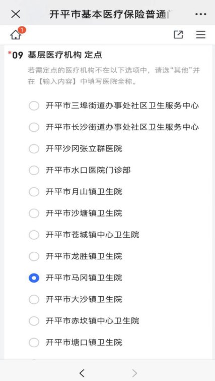 凡参加了江门市职工医保、城乡居民医保的参保人可选择为开平市马冈镇卫生院定点门诊