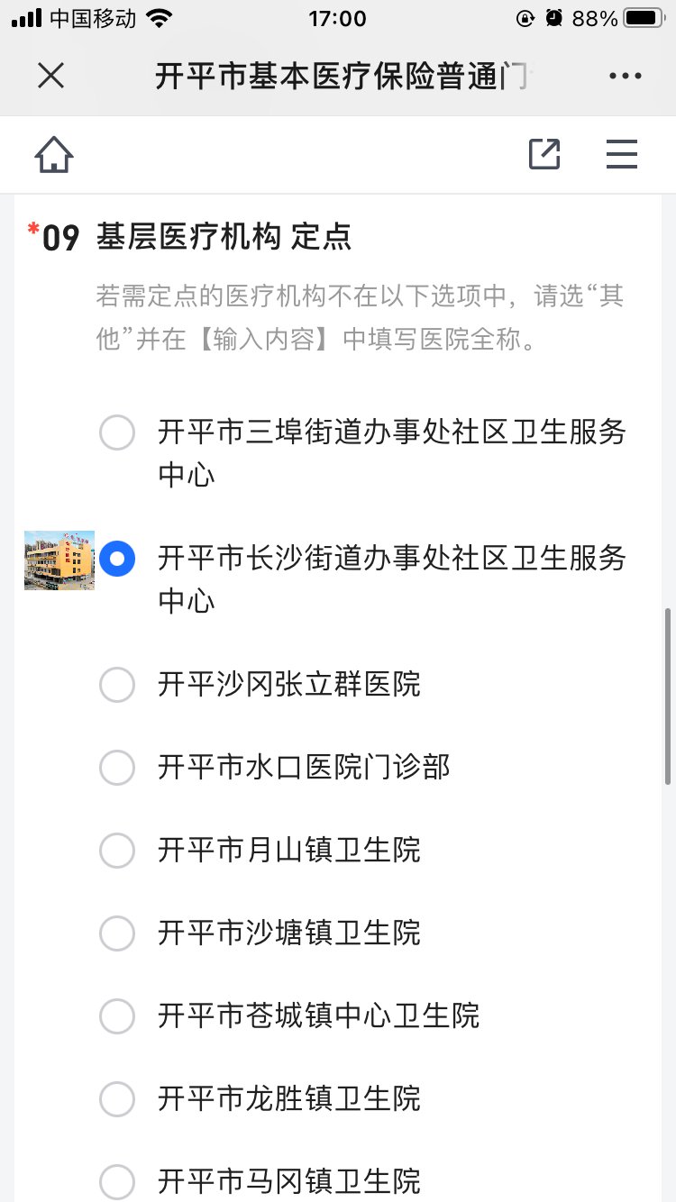 选点“开平市长沙街道办事处社区卫生服务中心”操作指引
