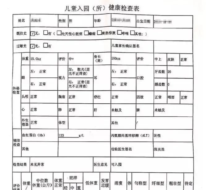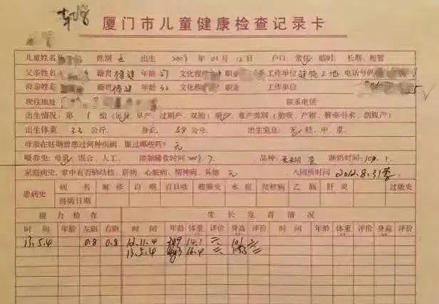 厦门市学龄前儿童健康检查记录卡(内附幼儿入园健康检查表)