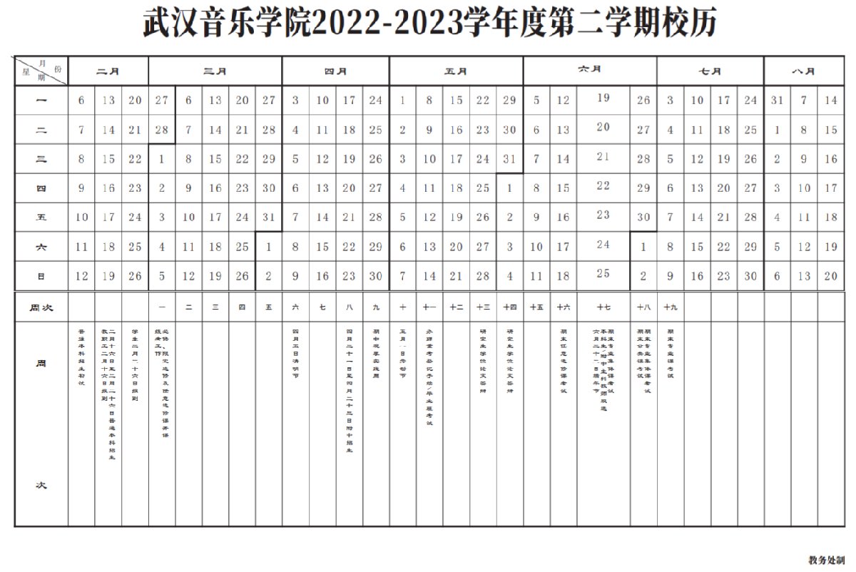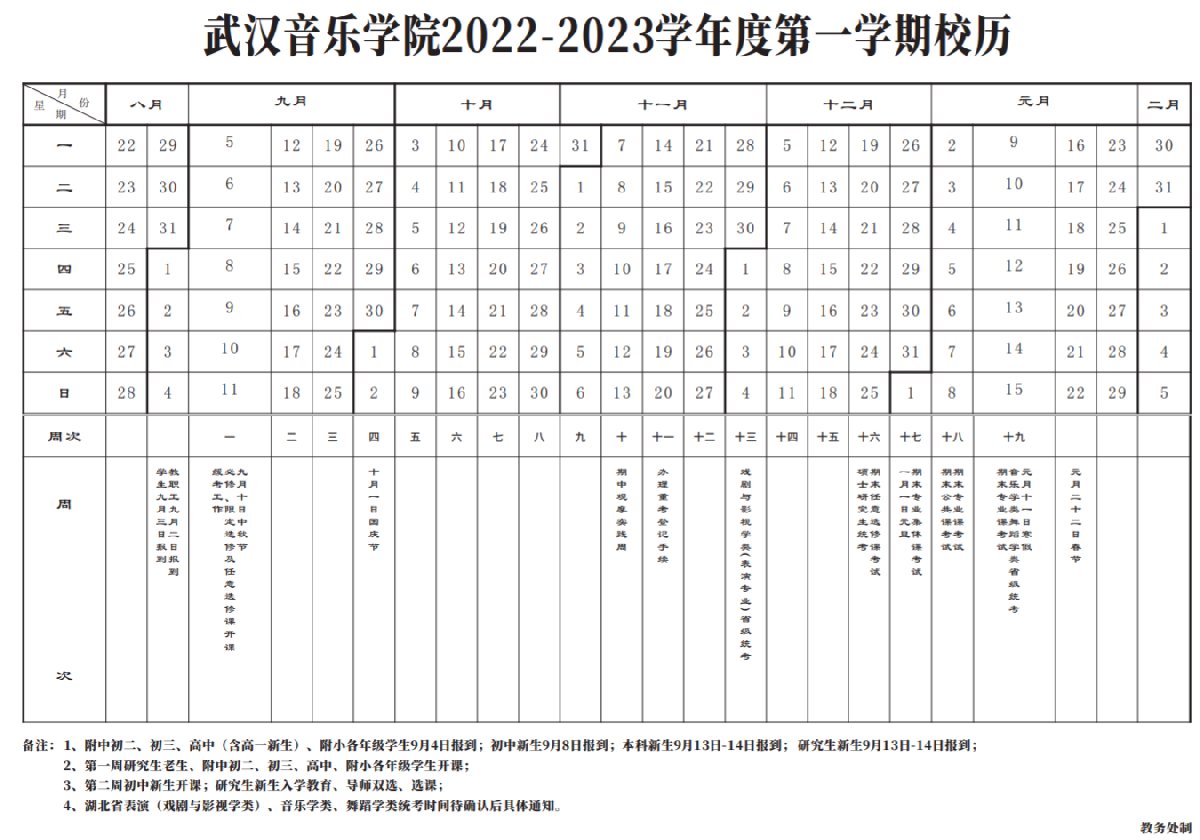 武汉音乐学院校历2022—2023 2022年武汉音乐学院