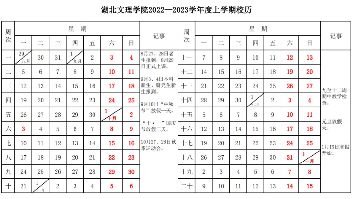 湖北文理学院校历表图片 湖北文理学院校历表图片查询