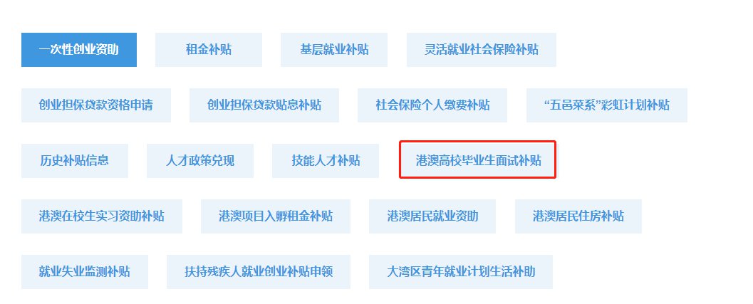 第四步:选择相应的补贴项目:在平台上找到【港澳高校毕业生面试补贴】,填写基本信息,上传所需材料,提交至所属地人社部门。