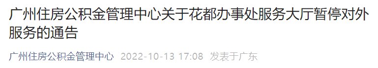 10月13日起广州花都区公积金办事处服务大厅暂停对外服务