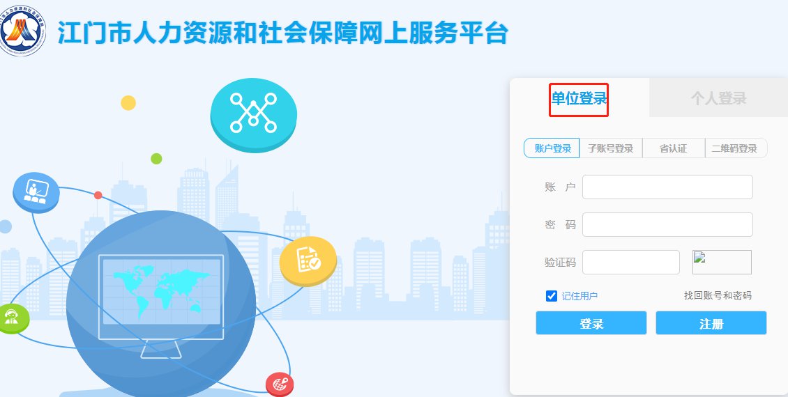 第二步:点击【单位登录】,输入账户、密码、验证码即可进入;