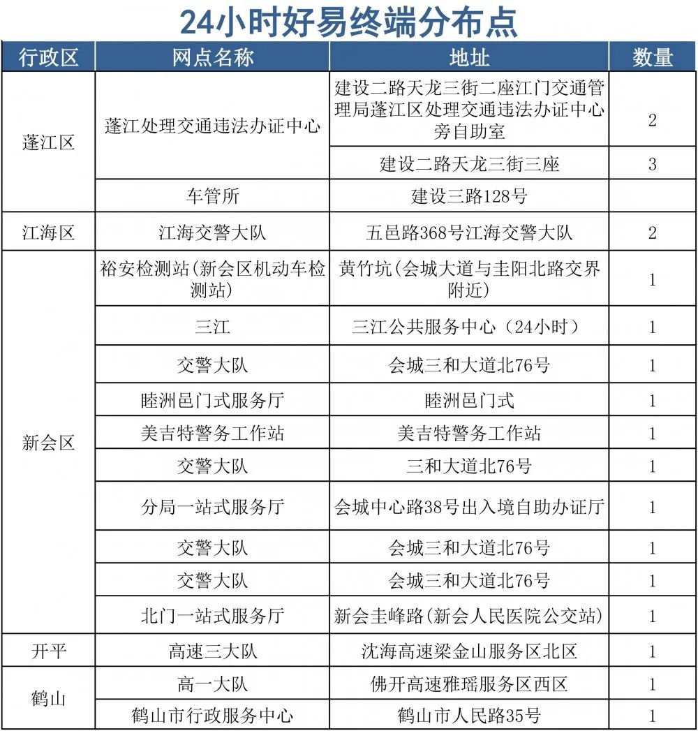 江门交通违法自助处理投放地点