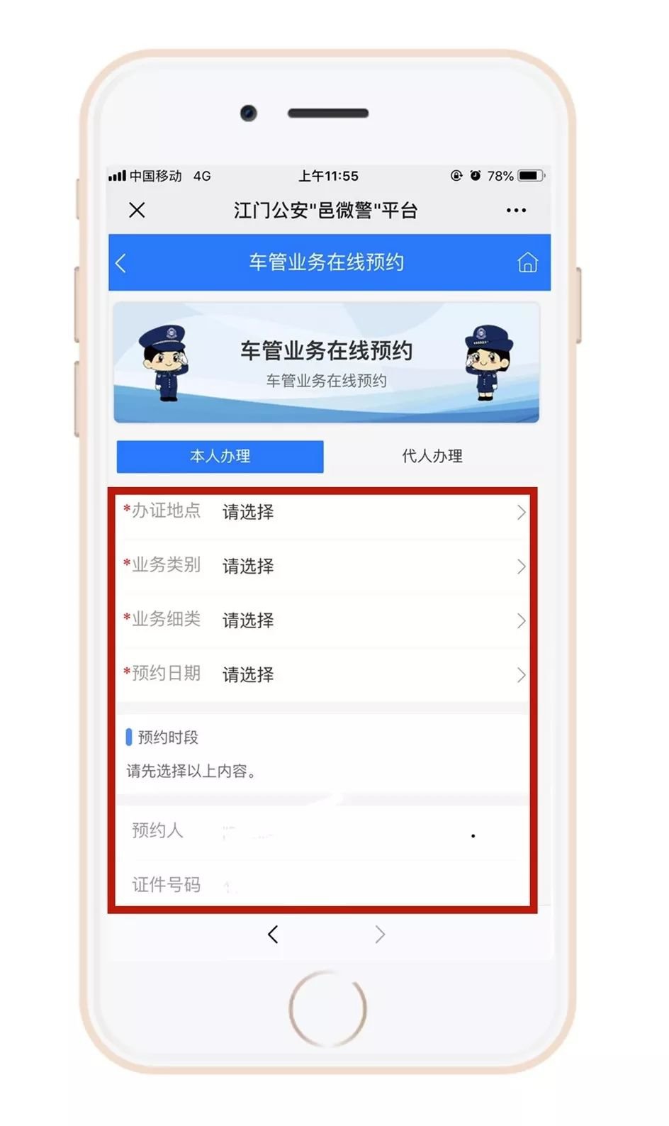 第四步:实名认证后,开始预约。选择办证地点、业务类别和办理时间,进行车管业务预约~业务预约必须提前一天。