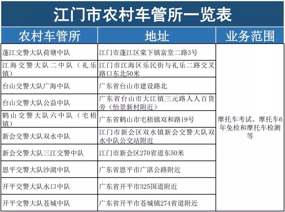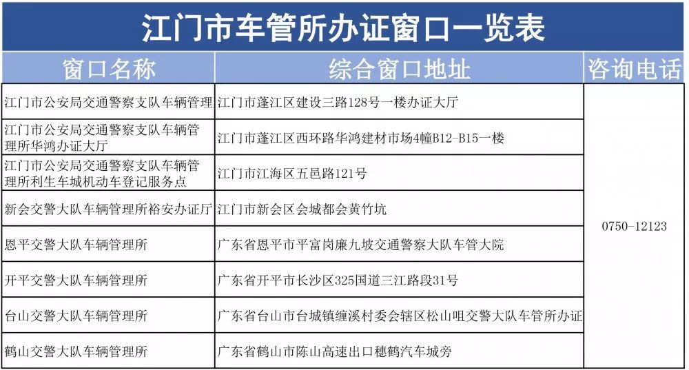 江门全市车管所办理地址一览表 江门市车管所办证大厅电话