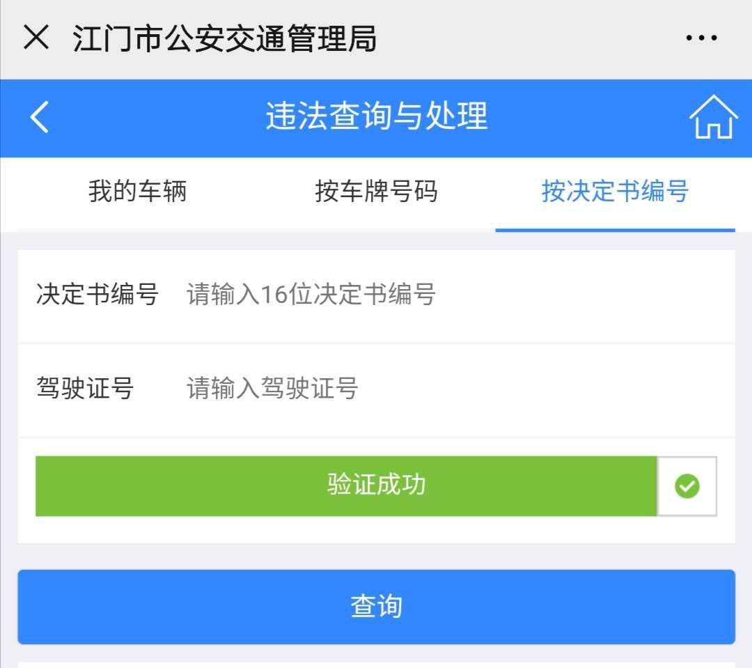 2、若按决定书编号查询,则应输入决定书编号及驾驶证号