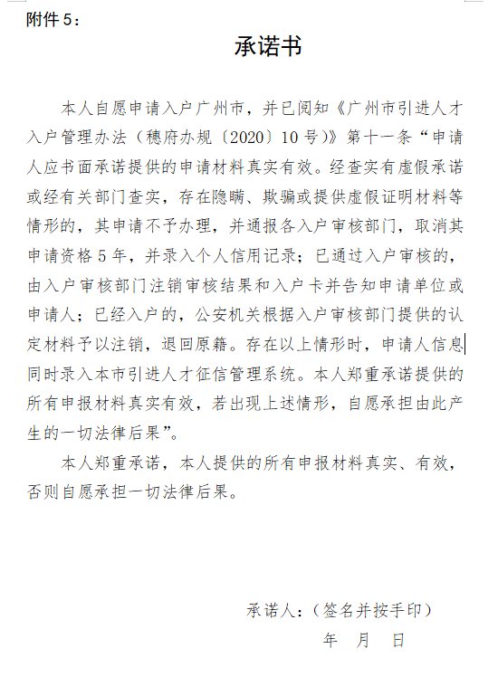 广州南沙区总量控制类指标引进人才入户申报承诺书下载
