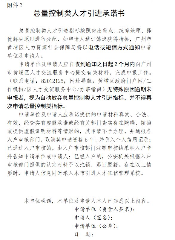 广州黄埔区总量控制类人才引进承诺书下载入口
