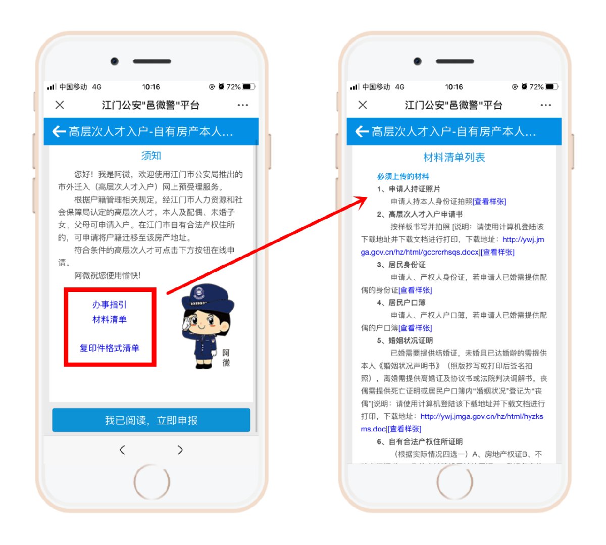 第一步:识别二维码,点击“导航助手”进入江门公安邑微警主界面