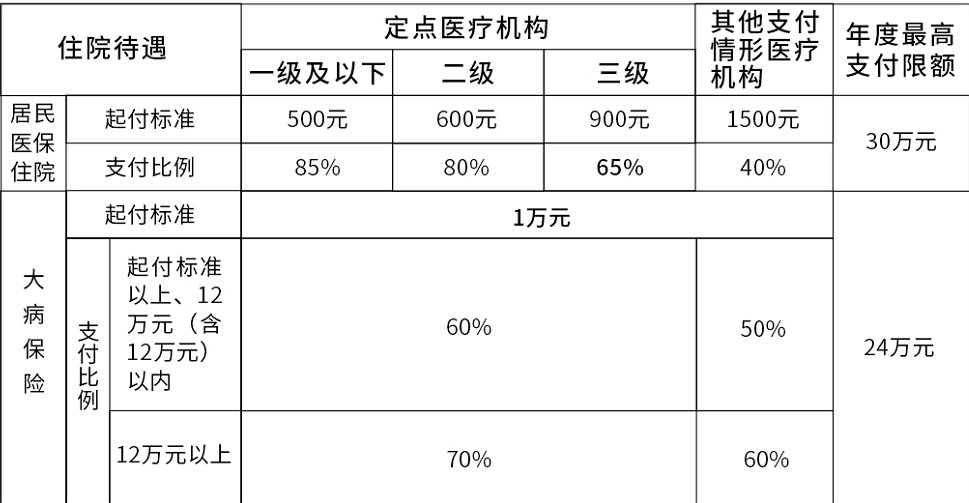 (一)住院待遇:基金对参保人在社保年度内累计最高支付限额(含大病保险)为54万元。