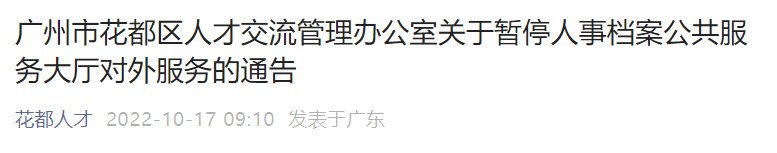 10月13日起花都区暂停人事档案公共服务大厅对外服务