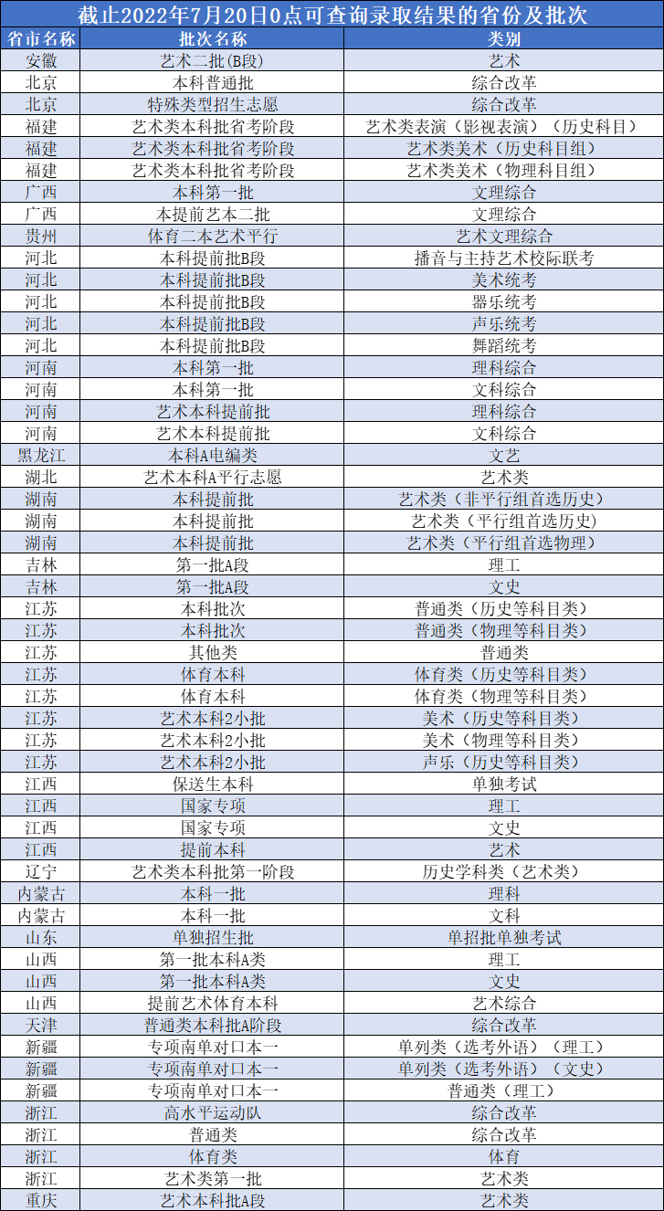 ☑ 江西省2022年普通高校招生第一批本科投档情况统计表: