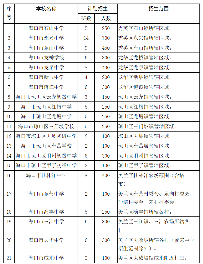 注:1.各镇中学负责招收本辖区内的适龄儿童少年(含流动人口子女)入学,招生范围由区教育局划定。