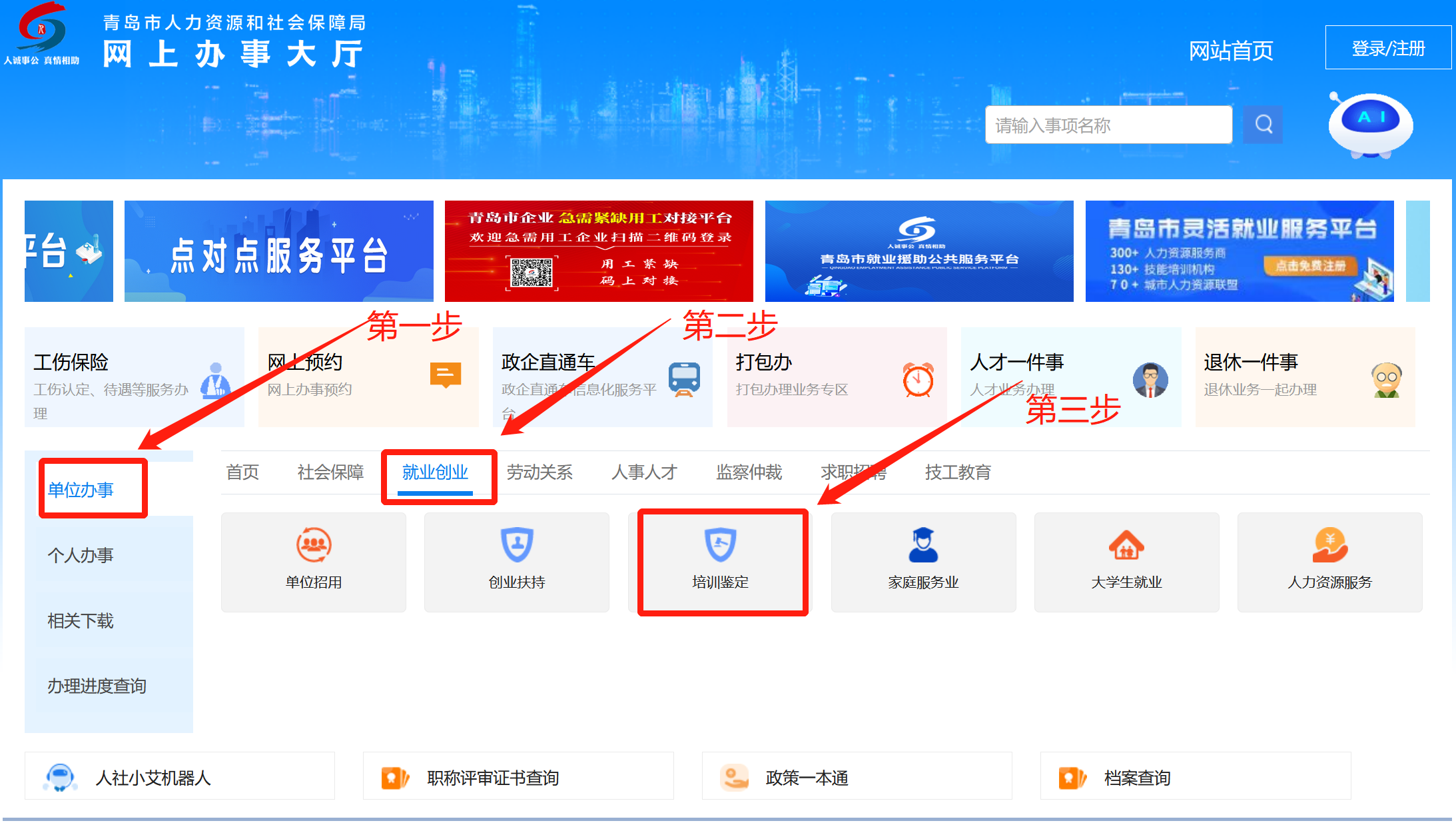 四、申请流程申领入口:青岛市人力资源和社会保障局官网