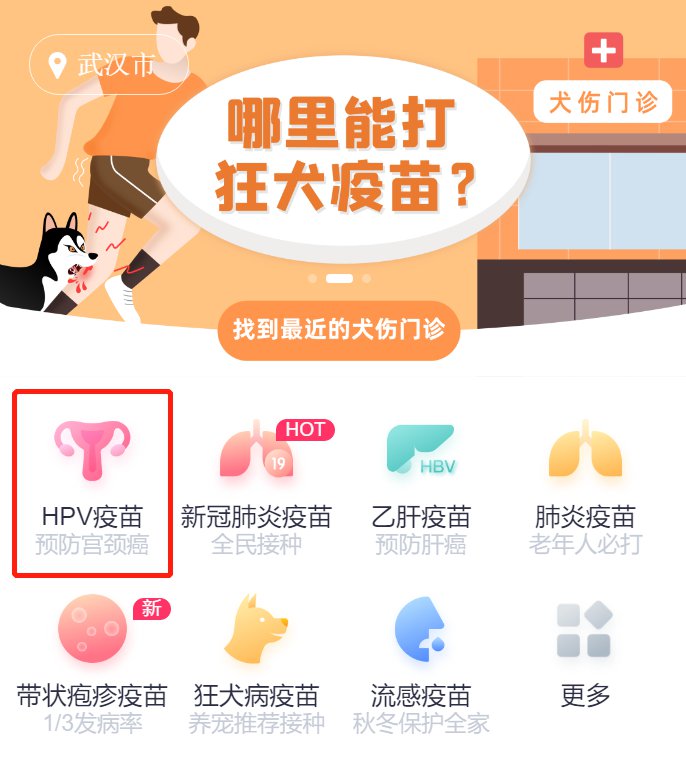 2、首页点击『HPV疫苗』,进入HPV疫苗预约专区;