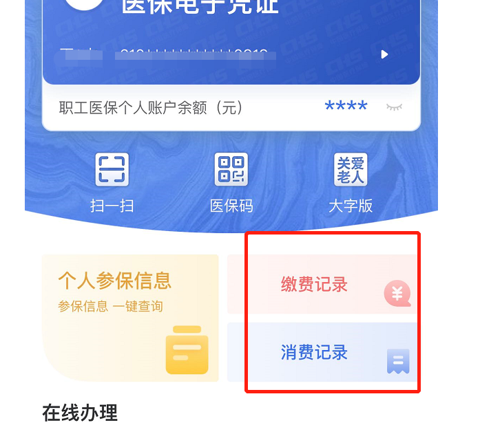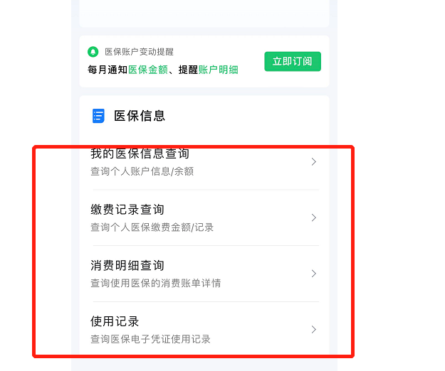 点击【我的医保服务】,即可查看医保信息,缴费记录查询,消费明细查询及使用记录