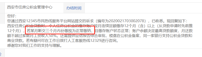 根据西安12345市民热线回复,西安公积金断缴3个月内补缴即视为正常缴纳。