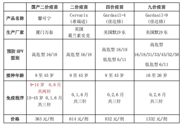 接种年龄:9-45岁的女性