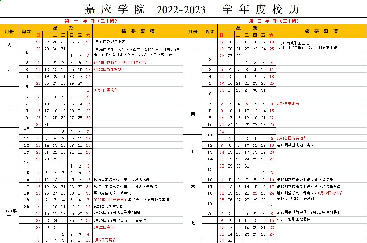 2022-2023学年校历,寒假放假时间为2023年1月14日-2月18日。