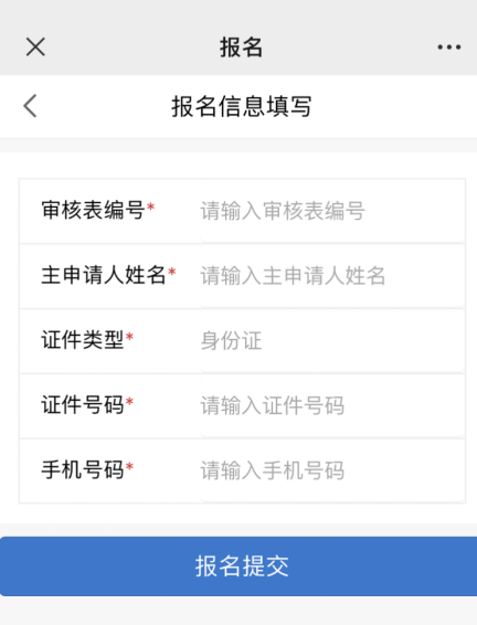点击【下一步】,进入报名信息填写页面。如下图:
