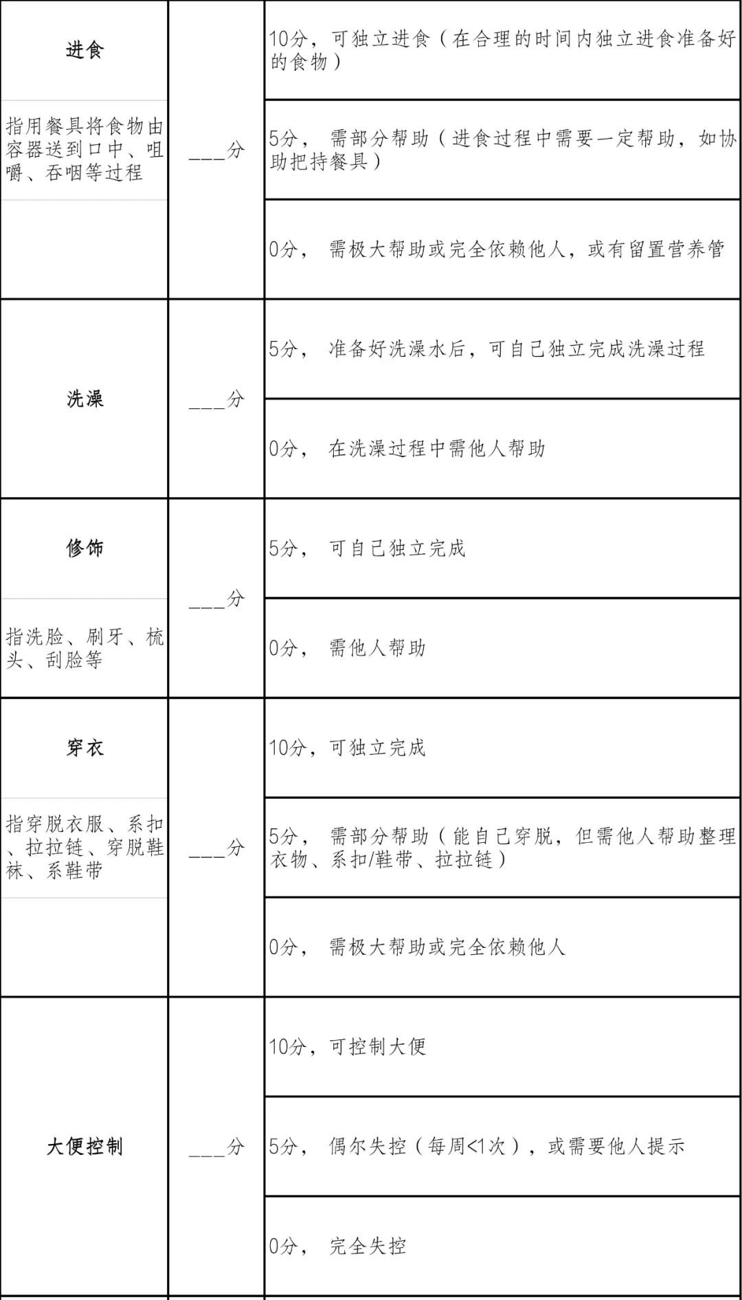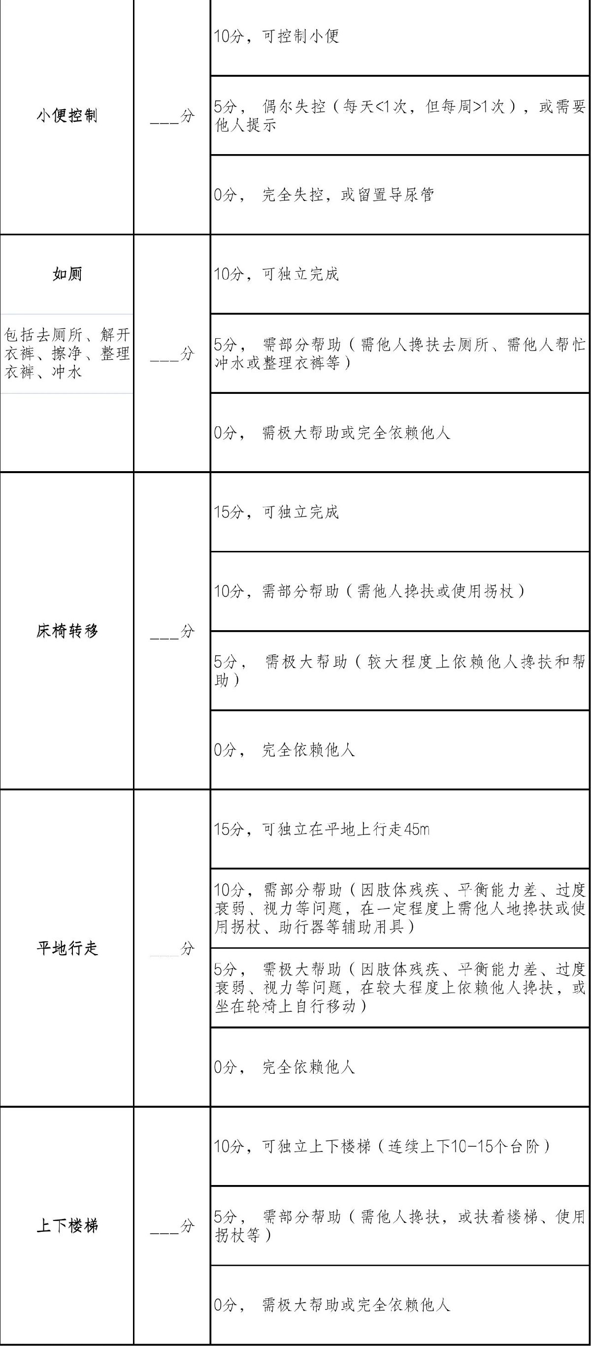 十四、日常生活活动评估表(Barthel指数评定量表)