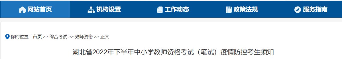 暂不延迟。目前,湖北省教育考试已发布了《湖北省2022年下半年中小学教师资格考试(笔试)疫情防控考生须知》。