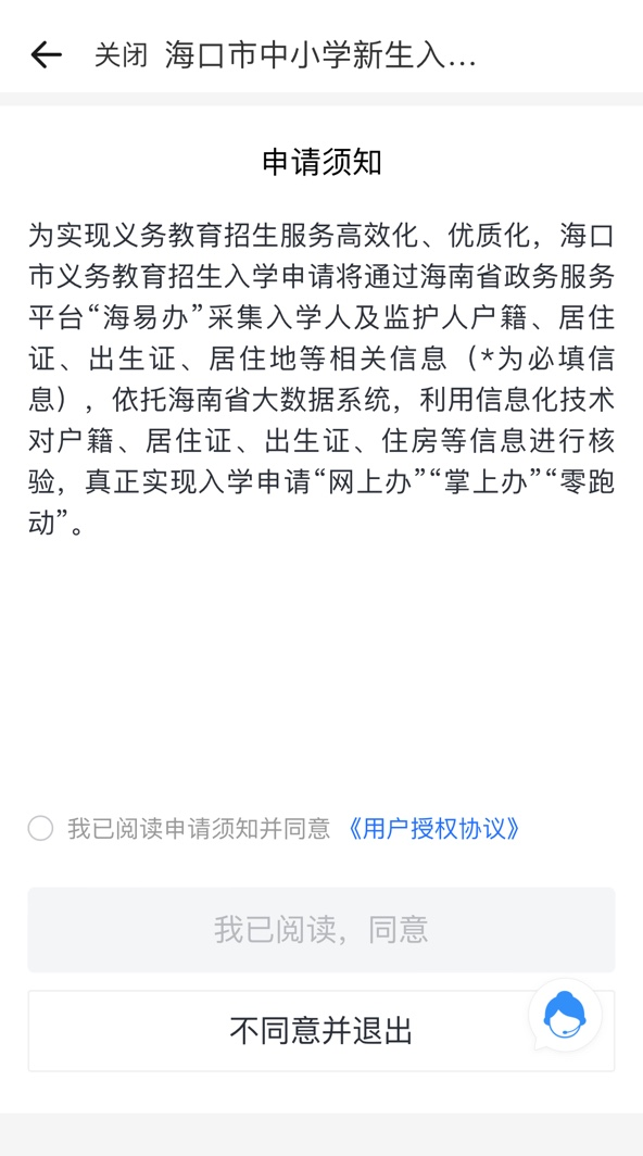 阅读申请须知,勾选“我已阅读申请须知并同意《用户授权协议》”,点击“我已阅读,同意”进入申请页面。