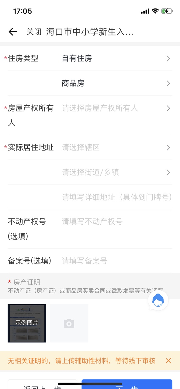 温馨提示:非海口市户籍,根据自身情况选择是否持有海口市居住证、是否在海口市缴纳社保。选择有则需拍照上传居住证照片、社保材料。