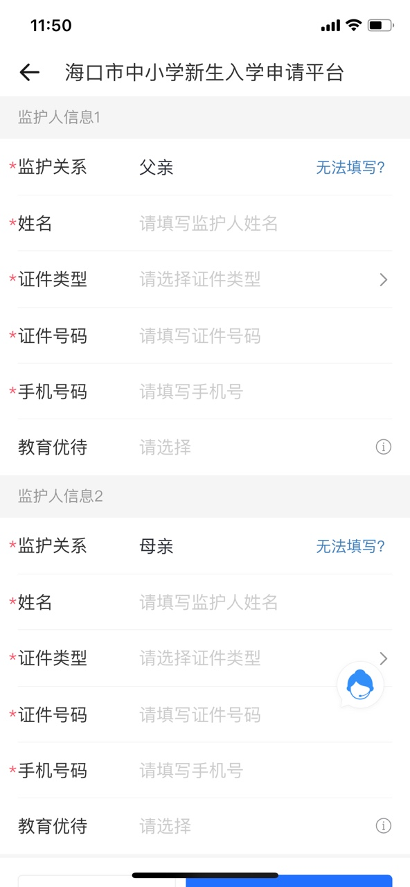 ③若有特殊情况无法填写某个监护人信息,则点击“无法填写”,选择原因。