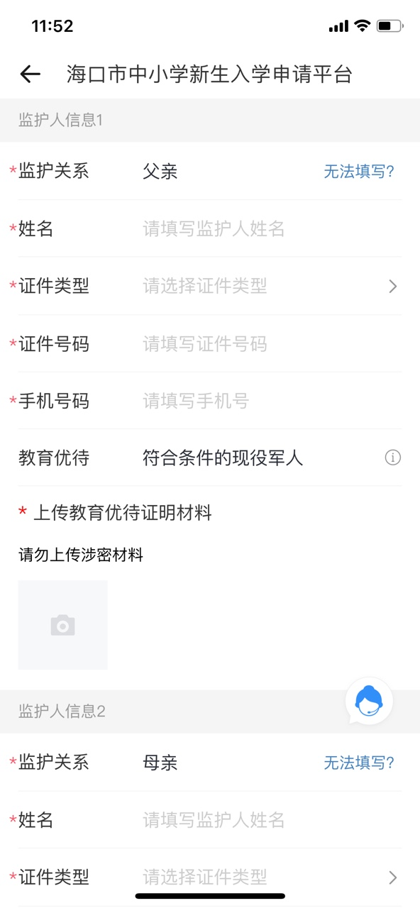 ②如监护人符合教育优待政策,可对教育优待类型进行选择,并上传教育优待证明材料(请勿上传涉密材料)。